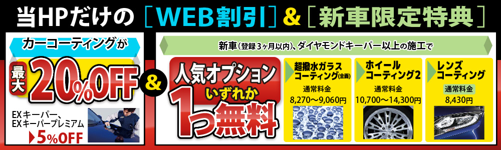 | 特徴 | ダイヤモンドキーパーのボディへの施工に加えて、さらに、ガラスコーティングを下記の「施工箇所」に施工いたします! |